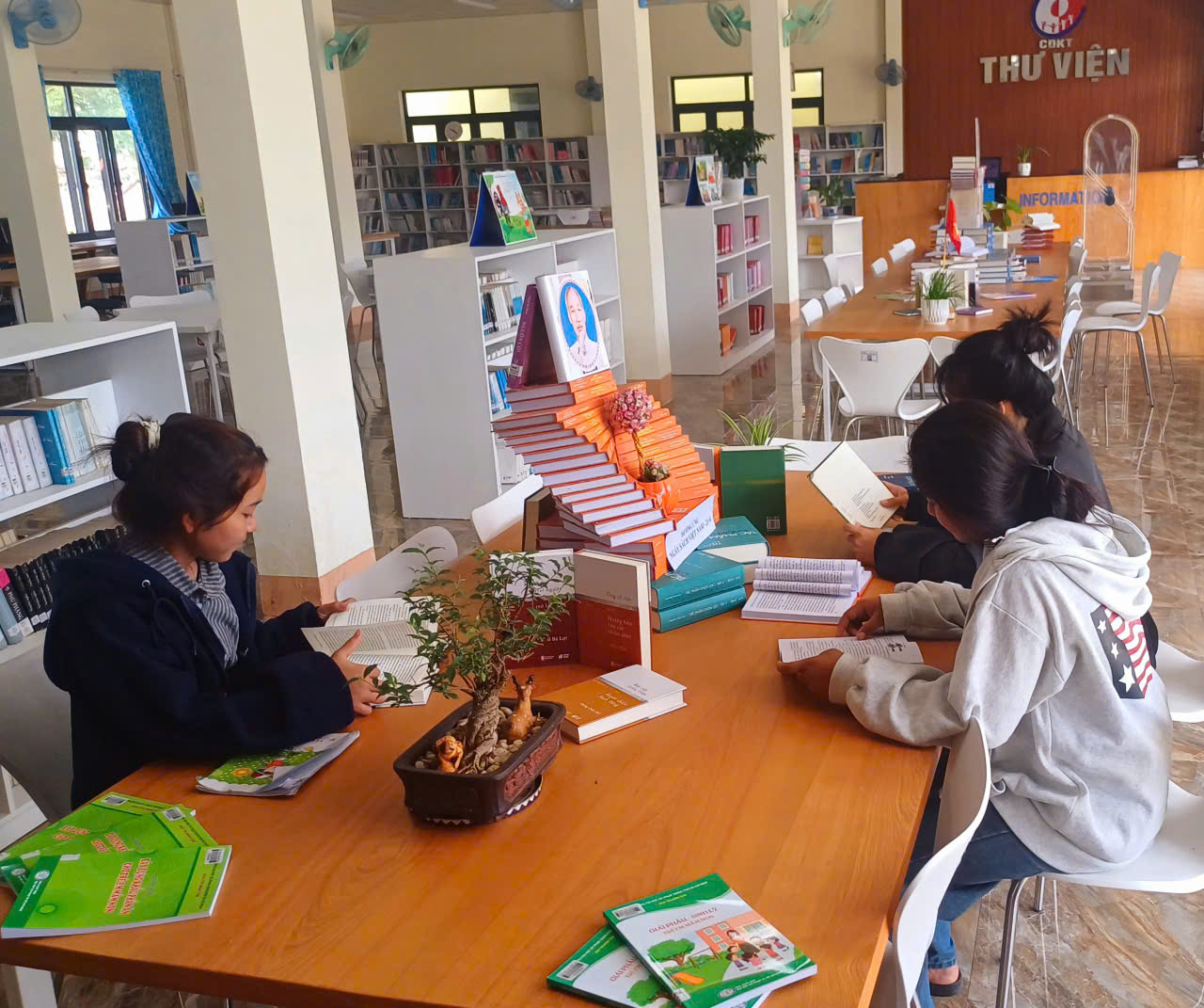 Tháng Tư về mang theo những tia nắng vàng rực rỡ, cũng là lúc không khí tại Thư viện Trường Cao đẳng Kon Tum trở nên rộn ràng hơn bao giờ hết. Hưởng ứng Ngày Sách và Văn hóa đọc Việt Nam năm 2026 với chủ đề “Sách - Tri thức - Khát vọng phát triển đất nước”. Thực hiện Kế hoạch số 101/KH-CĐKT ngày 01/4/2026 của Trường Cao đẳng Kon Tum tổ chức các hoạt động hưởng ứng Ngày Sách và Văn hóa đọc Việt Nam năm 2026, Thư viện Trường chính thức khởi động chuỗi hoạt động đa dạng: từ xếp các mô hình sách nghệ thuật, giới thiệu sách mới, phối hợp với các nhà giáo khi tổ chức các tiết giảng dạy trực tiếp tại không gian thư viện.